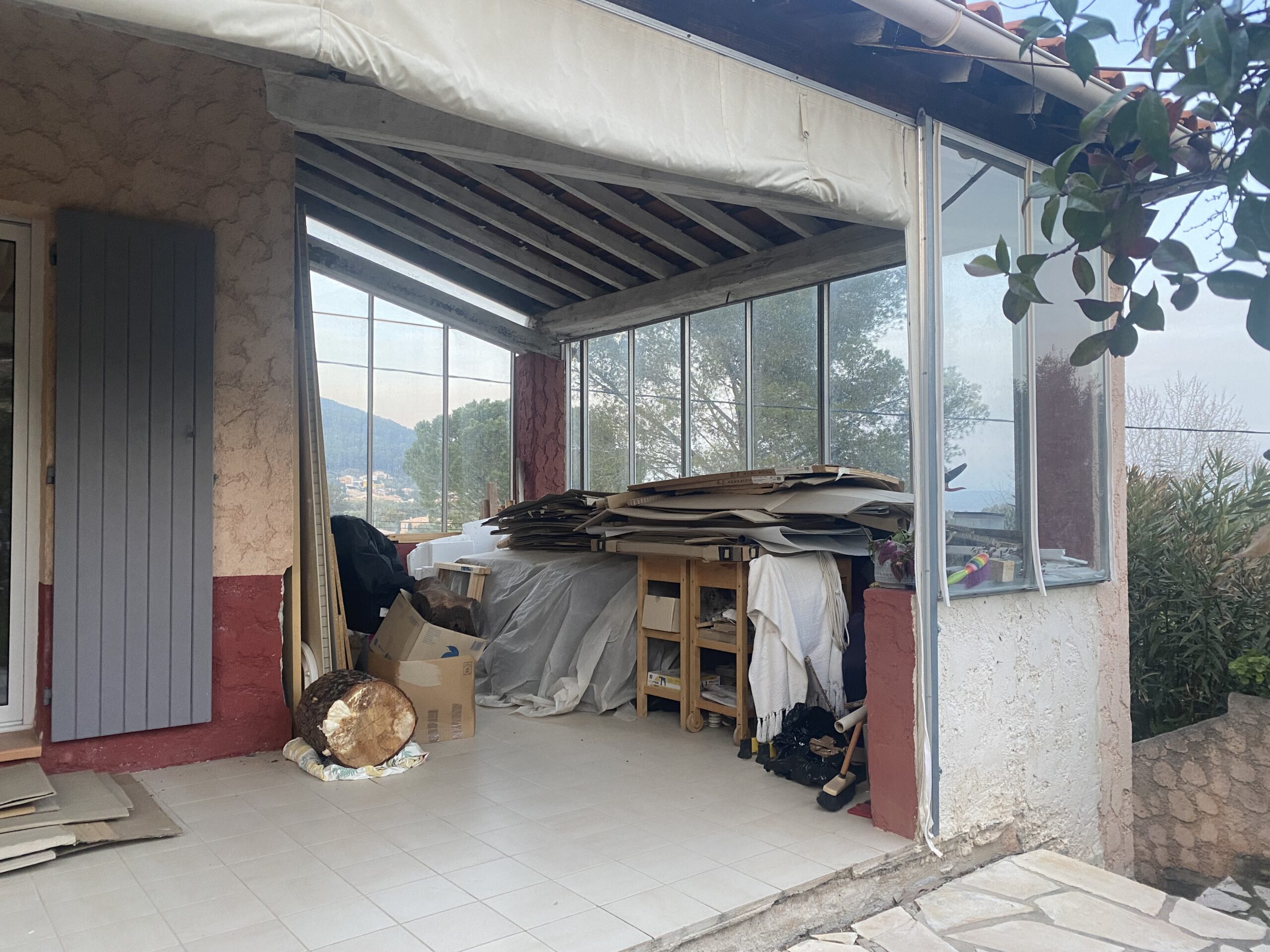 – une terrasse ouverte à fermer et transformer en buanderie/cuisine ainsi qu’un lieu pour recevoir l’été