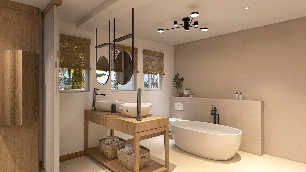 Le projet : Mme J. a acheté une maison en cours de rénovation et a fait appel à moi pour finir la réalisation et l’agencement de divers espaces :